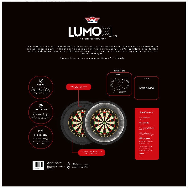 Med 120 LED'er fordelt rundt om hele ringen, leverer Bull's Lumo minimum 1440 lumens, hvilket garanterer en jævn og klar belysning på hele dartskiven.