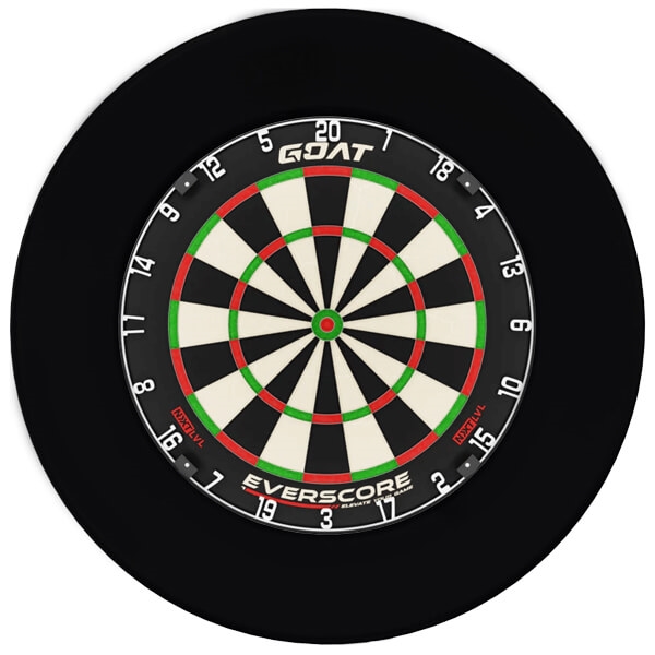 En stærk allround dartskive kombineret med en stilren sort beskyttelsesring.