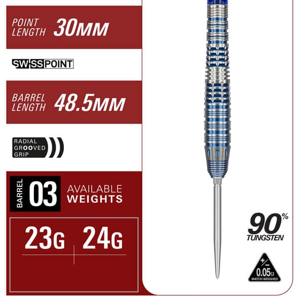 03-versionen er en torpedoformet dartpil, designet til hastighed og fremdrift.