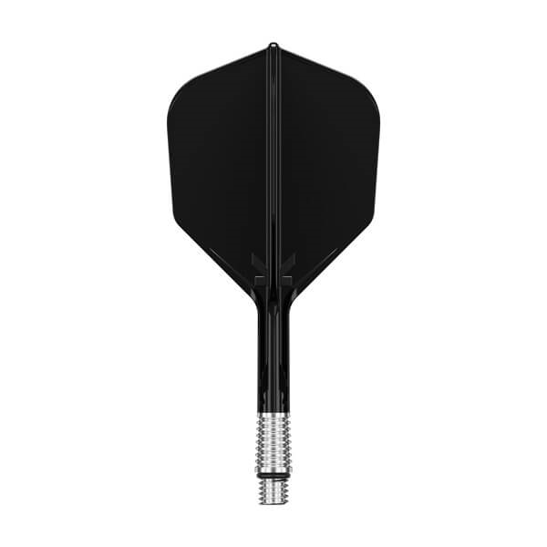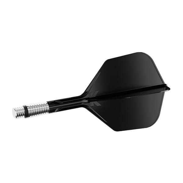Basen på skaftet er fremstillet i let aluminium med radiale riller for bedre greb ved montering og afmontering. En gummiring og 2BA-gevind sikrer en fast og stabil forbindelse til dartpilen, samtidig med at systemet kan bevæge sig kontrolleret ved behov.