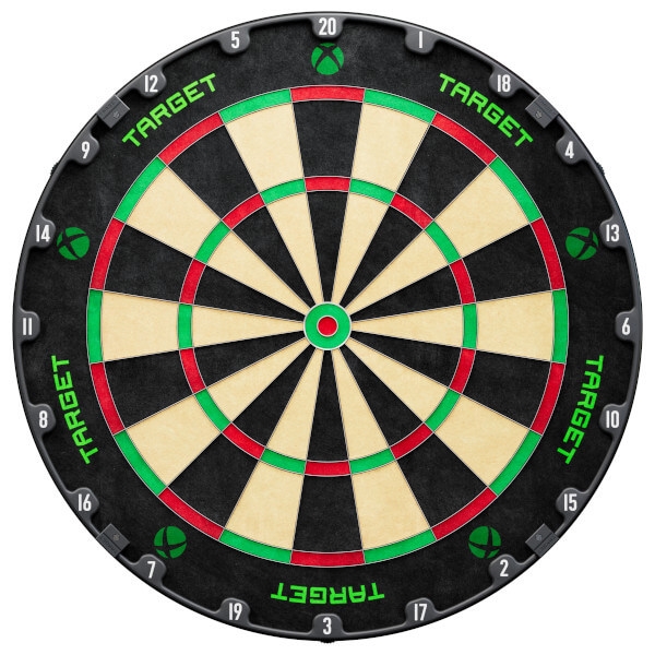 I stedet for det klassiske farveudtryk er skiven redesignet med et iøjnefaldende Xbox-look – med karakteristisk Xbox-grøn og moderne grafik, der giver dartskiven et helt nyt visuelt udtryk.