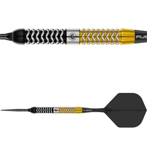 Winmau Exion fra Frontier Collection er udviklet til spillere, der ønsker klart definerede grebzoner, stabil balance og mulighed for at tilpasse deres setup. Dartpilen har et markant sort–guld–sort design, hvor den gyldne midtersektion både skiller sig visuelt ud og fungerer som et naturligt referencepunkt for grebet.